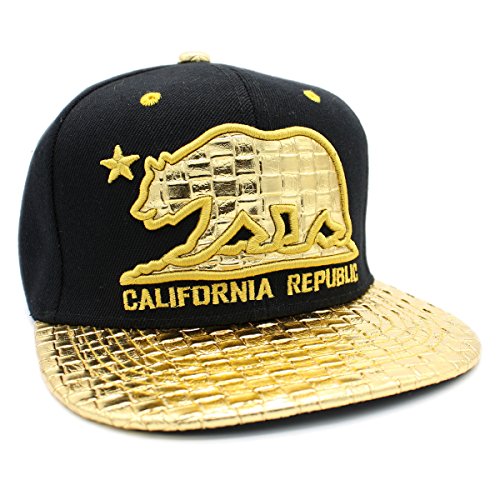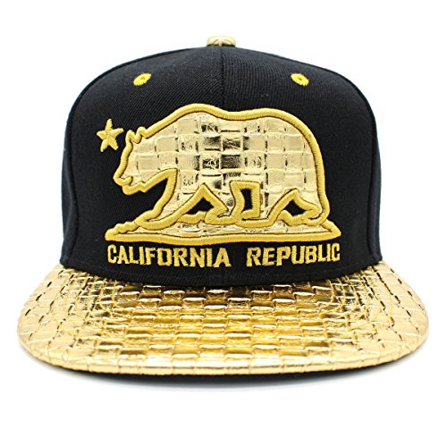 LAFSQ Embroidered California Republic Gold Foil Flat Bill Snapback Cap
