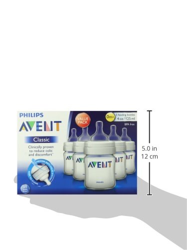 Philips Avent Classic Baby Bottles, Opaque, 4 Ounce, (5 Pack- Discontinued by Manufacturer)