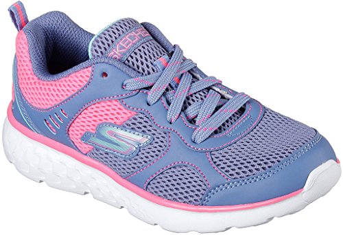 SKECHERS KIDS Girl's Pep Kicks Lace-Up (Little Kid/Big Kid) Blue/Neon Pink Shoe
