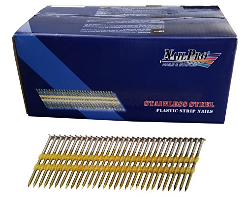 NailPro 3 Inch by 0.120 Type 304 Stainless Steel 21 Degree (Fits 20-22 Degree Nailers) Plastic Strip Ring Shank Full Head Collated Framing Nails (1000 Piece Carton)