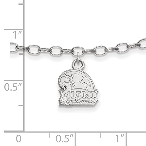 Solid 925 Sterling Silver Miami University Anklet - with Secure Lobster Lock Clasp (10mm)