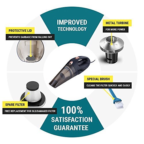 - Keep a sharp, clean interior and never have food crumbs, dust or dirt rotting your car again!