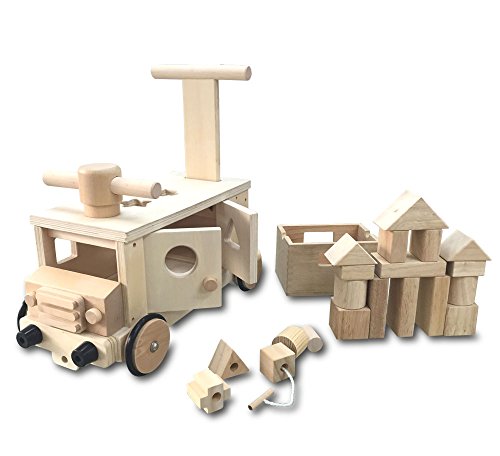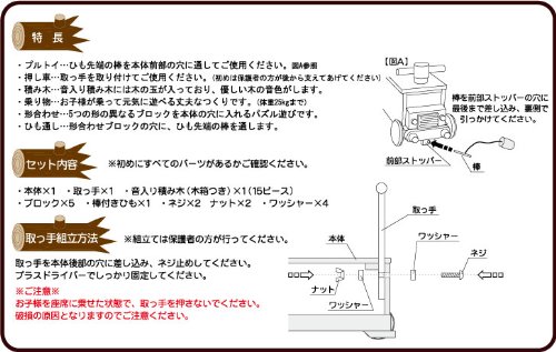 材質:本体/パイン材(松)ほか、 音積み木/ゴムの木、 中国製 ※お子様を乗せた状態で取っ手を押すことは絶対にお止めください。破損の原因となります。