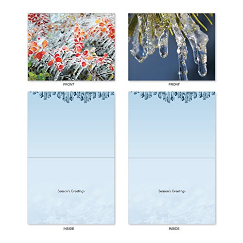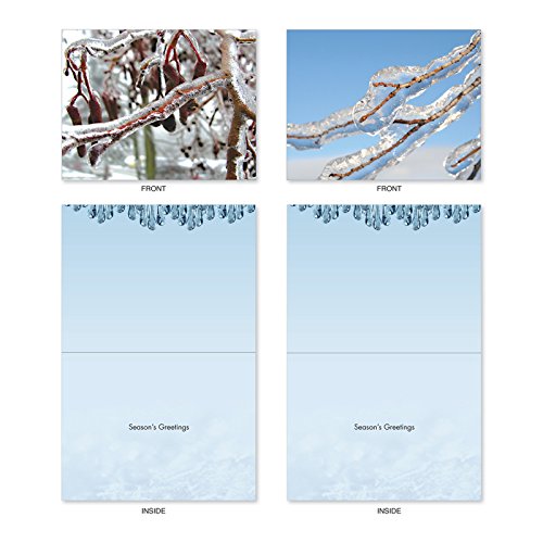 The upside of an ice storm is the fleeting, but dangerous, beauty left behind. Send along your Season's Greetings with these Christmas Note Cards showing these breathtaking images of nature encased in ice. The wintery images are perfect for best wishes at Kwanzaa, Hanukkah or the New Year as well as Christmas. These notecards look great framed, too! Try framing them individually, or grouping several in a collage frame, to create visually appealing wall decor.