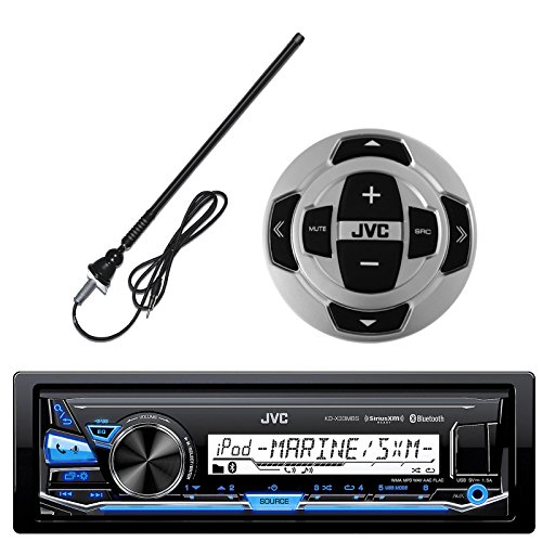 PACKAGE BUNDLE KIT INCLUDES: 1 JVC KDX-33MBS Bluetooth Radio AUX USB Sirius-XM Player = 1 JVC RM-RK62M Marine Stereo Wired Remote controller = 1 Enrock 20B 45 Black Outdoor Marine Radio Angled mounting Antenna.