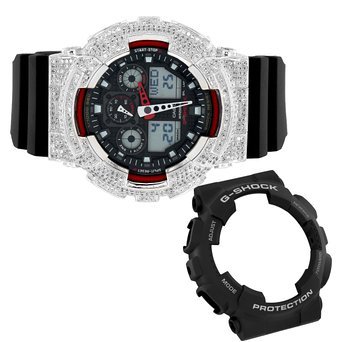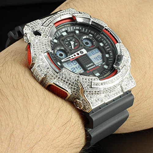 -. Title : Iced Out Red & Black Dynamic 2 Bezel Combo GA100 G Shock Watch Sale