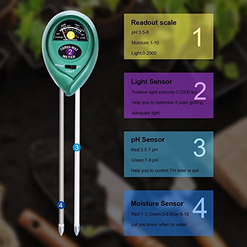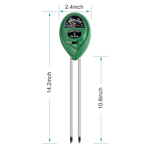 -. Title : Soil PH Meter, 3-in-1 Soil PH Meter Moisture Sensor PH Sunlight Tester kit Plant Moisture Meter for Garden Farm Lawn (No Battery needed)