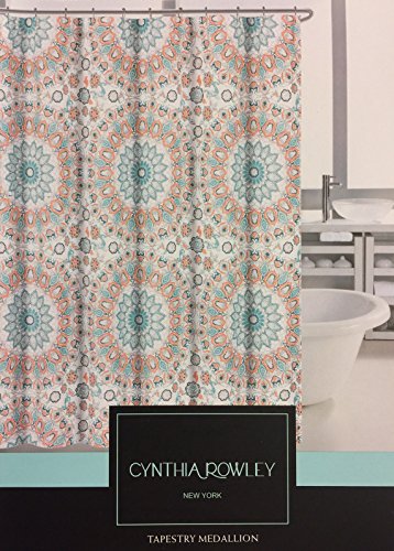 Cynthia Rowley Teal Turquoise and Tangerine Tapestry Medallion Shower Curtain