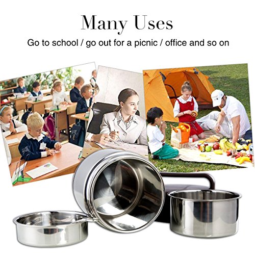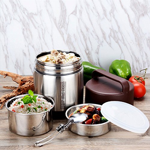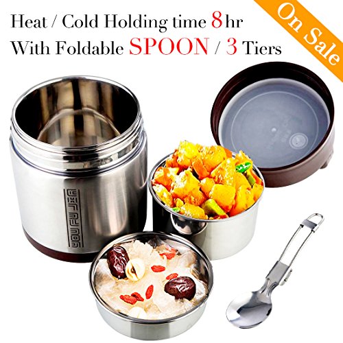 Lunch Box Stainless Steel Food Jar 3 Tiers Vacuum Insulated Food Container Thermal Lunch Container Leak Proof Food Storage Box Food Savors with Handles and Spoons 1.6L Holding Time 6-8hr 7x5’’