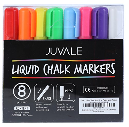 ARTIST QUALITY - Unleash your creativity with these bullet-tipped liquid chalk markers in 8 bright and vivid neon colors. Colors include: Red, Pink, Yellow, Blue, Green, Orange, Purple, and White. Made in Taiwan (NOT CHINA).