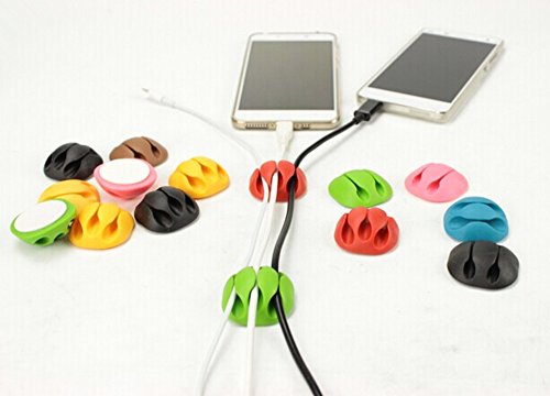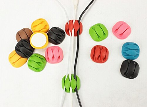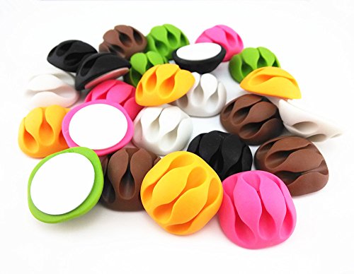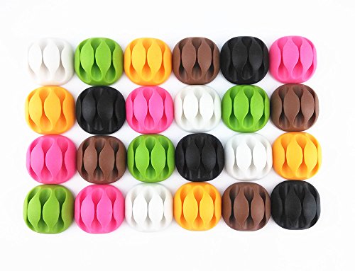 yueton 24pcs Colorful Three Hole Desktop Wire Cord Cable Clip Management Cable Organizer Cord Holder