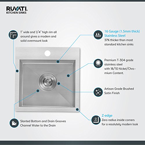 Ruvati RVH8115 Topmount 15" x 15" Drop-in 16 Gauge Bar Prep Sink Single Bowl