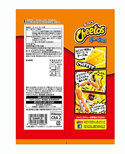 原材料:コーングリッツ(遺伝子組換えでない)(国内製造)、植物油、砂糖、食塩、乳等を主要原料とする食品、ぶどう糖、クリーミングパウダー、チーズパウダー、香辛料、酵母エキスパウダー、たん白加水分解物/調味料(アミノ酸等)、香料、カロチノイド色素、甘味料(スクラロース)、(一部に小麦・乳成分・大豆を含む)