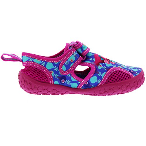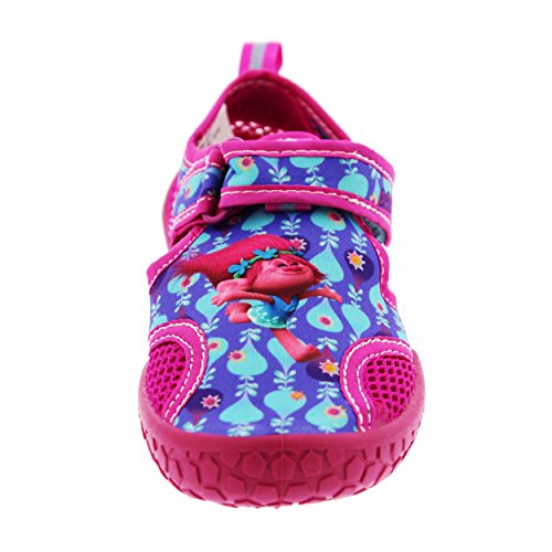 Binding : Apparel Product Description Get ready for fun and adventure wearing these adorable Trolls water shoes that are perfect for active water sports or just wading in the surf. Constructed from quality synthetic material and natural rubber, the uppers feature a pull tab on the back and slip on style with a hook and loop closure to ease putting them on and taking them off, and the soles have an aggressive tread for traction in and out of the water. These cute Dreamworks aqua socks feature sublimated images of your favorite troll, Poppy, and contrast stitching accents for detail and style! Perfect summer water shoe for any fan of Dreamworks Trolls! 0
