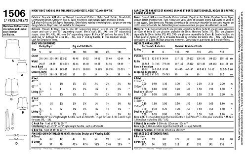 Simplicity Creative Patterns 1506 Husky Boys' and Big and Tall Men's Vests, A (Small-Large/1X-Large-5X-Large)