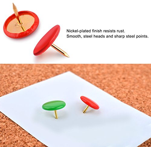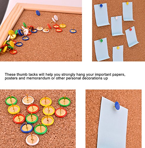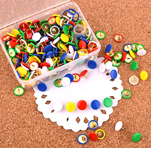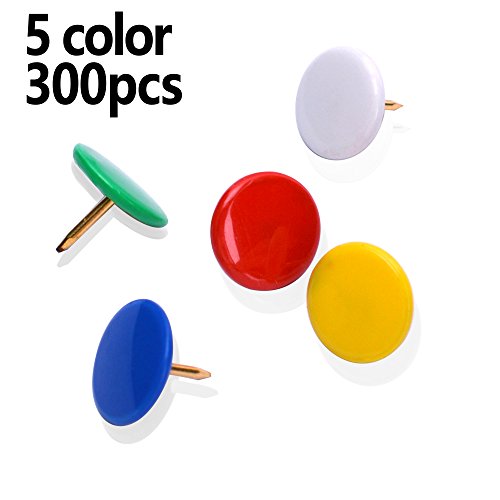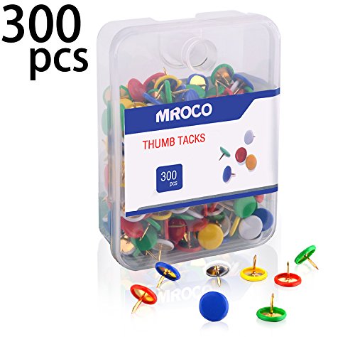 MROCO Thumb Tacks Colored Drawing Pins Color Plastic Round Head Pinks Office Thumbtack, Push Pin for Home, School, Sharp Steel Points 3/ 8 Inch,5 COLOR (Red,Blue,White,Green,Yellow) Box of 300