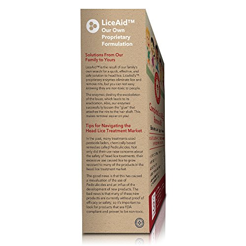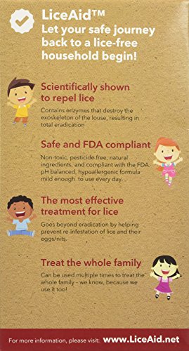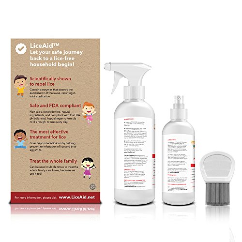 - Feature : YOUR COMPLETE SOLUTION FOR HEAD LICE REMOVAL: LiceAid's FDA compliant, natural enzyme based shampoo ERADICATES lice, nits and eggs on contact. Our proprietary formulation dissolves the lice's exoskeleton in one single treatment, allowing you to easily comb out the dead lice and eggs. / NO HARSH CHEMICALS or PESTICIDES EVER - We are parents and have experienced exactly what your going through. That is why we developed LiceAid as a natural solution for parents who wanted a healthier alternative. Unlike the majority of lice treatment solutions in the market that use pesticides and harmful chemicals, LiceAid only uses FDA Compliant NATURAL ENZYMES THAT WORK and are safe for children and adults. / LICE FREE IN 3 EASY STEPS: LiceAid was designed to be easy to use yet effective. Simply wash you or your childs hair with the LiceAid Shampoo. Remove dead lice with the LiceAid comb (provided). Now you are lice and nit free. Use the LiceAid Don't bug me Spray to help prevent future infestations. / GUARANTEED EFFECTIVE OR YOUR MONEY BACK!! We know what its like to want to get rid of the lice as quickly as possible. Our product works if you follow the step-by-step instructional video we provide for you with your purchase. We are here to support you through this challenging time and will help however we can by answering your questions. In the unlikely chance you are not satisfied, we will provide you a full refund - no questions asked / BONUS: SAFEGUARD YOUR FAMILY WITH OUR "DON'T BUG ME" REPELLANT SPRAY: Follow up your successful lice treatment with protection and prevention! Our preventative spray smells great and contains the same potent enzymes we use in our shampoo.