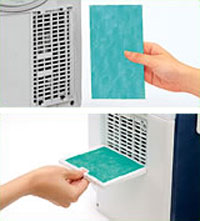 ![]() | 今までの柿カテキン添着フィルター(2層)で、アレル物質(ダニの死がいやフン・花粉)吸着分解フィルターをはさんだ3層式の新フィルター。きれいな風で乾燥する |