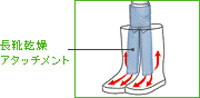 ![]() | 乾かしにくい長ぐつもおまかせ。付属の〈長ぐつ乾燥アタッチメント〉を装着するだけで、つま先まで温風が届き、隅々までしっかり清潔乾燥できる |