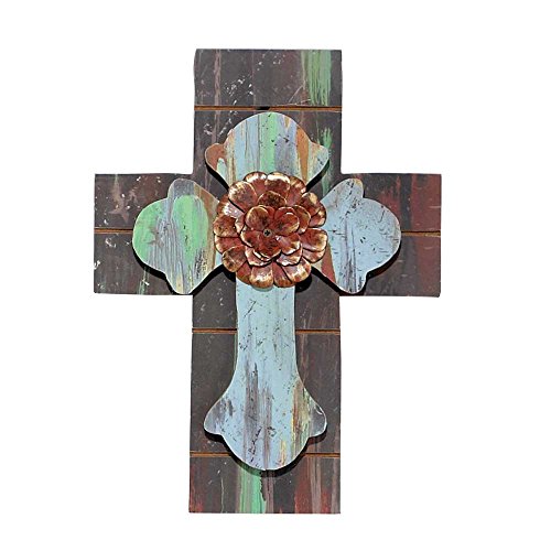 Beaded Board with Copper Tone Flower Applique 7.5 x 10 Wall Cross Decoration