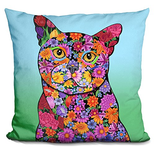 LiLiPi Flowers Black Cat Decorative Accent Throw Pillow