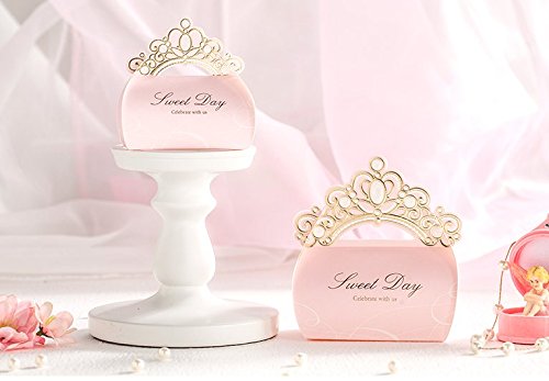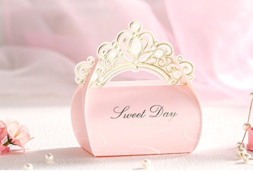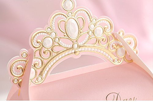 Astra Gourmet 25-Pack Pink Wedding Party Favor Candy Boxes - Crown Handle - Baby Shower Favor Wedding Gifts