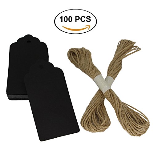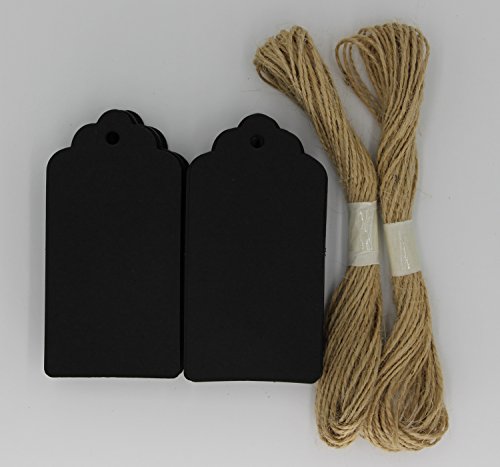 Miraclekoo 3.5"x1.8" Black Paper Gift Tags Craft Paper Tags with Free 20 Meters Jute Twine,100 pcs