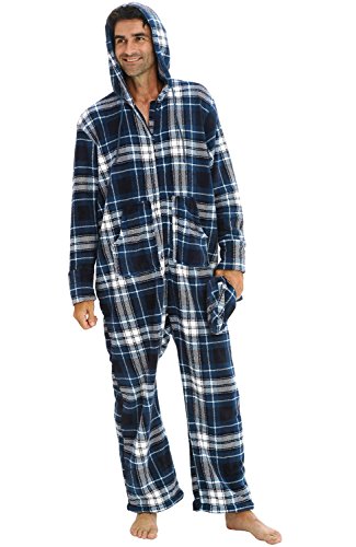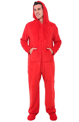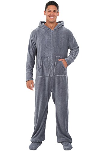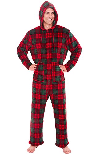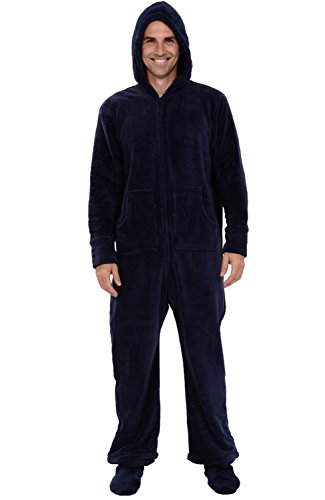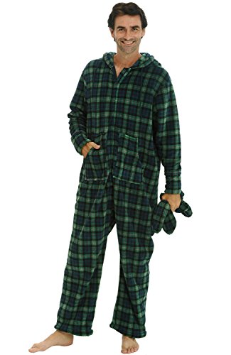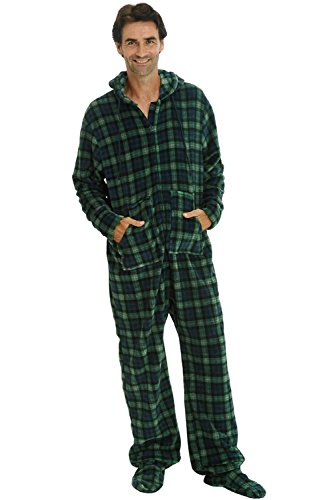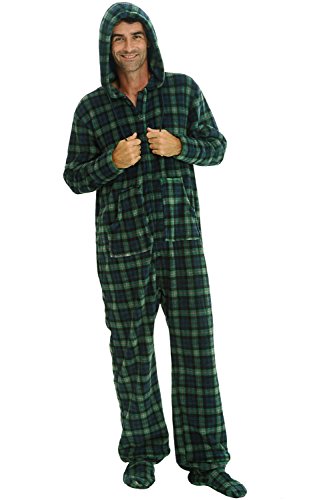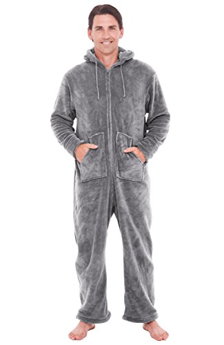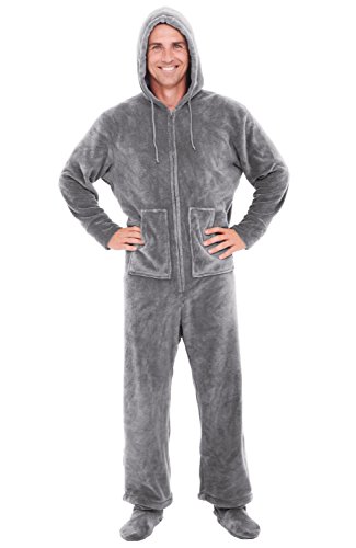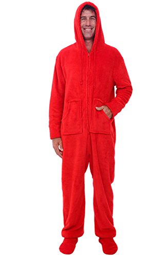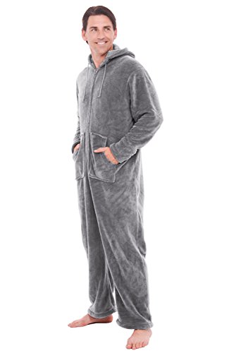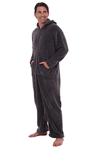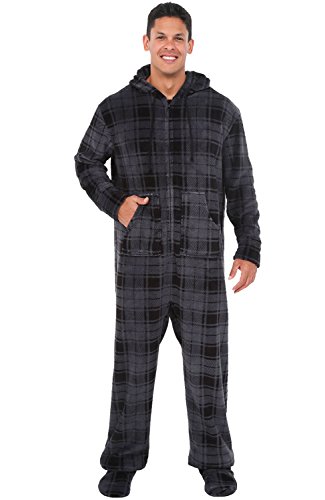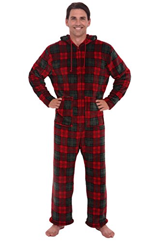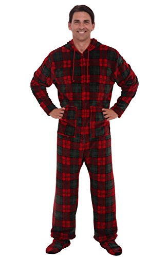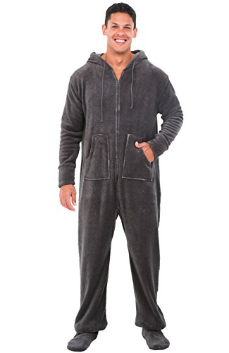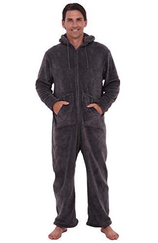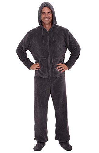 | Del Rossa Men's Fleece Hooded Footed One Piece Onesie Pajamas |