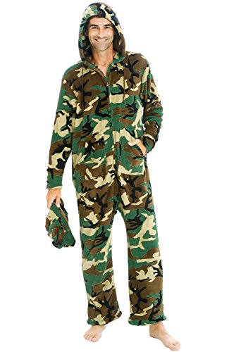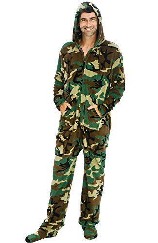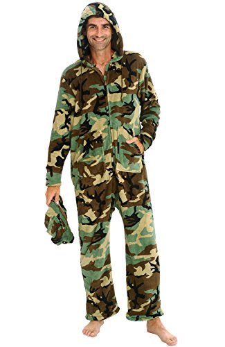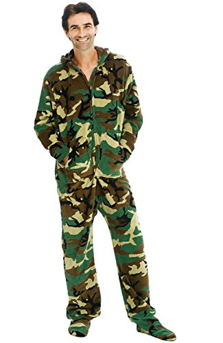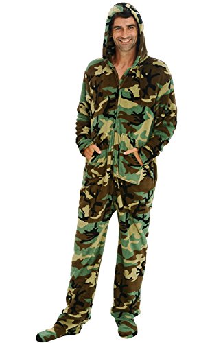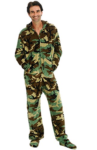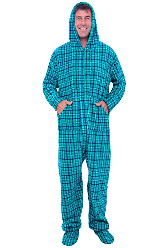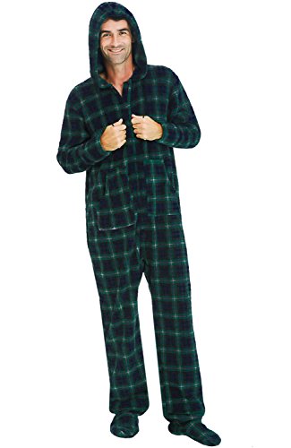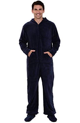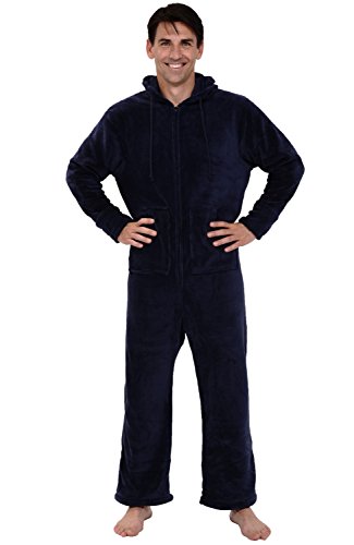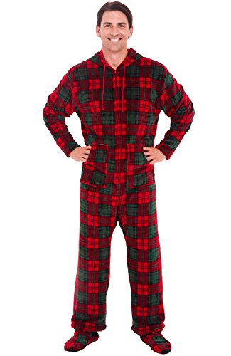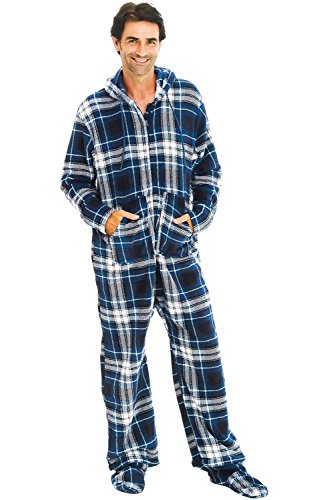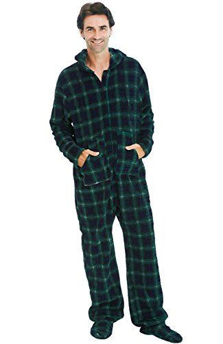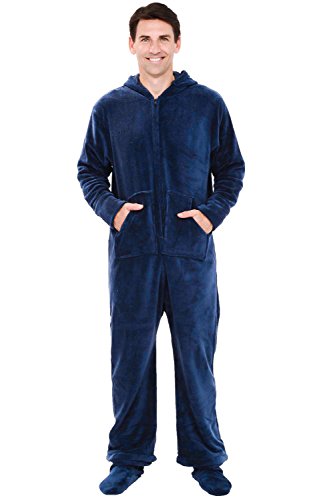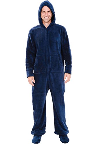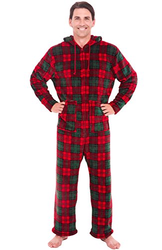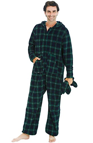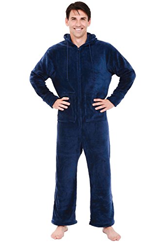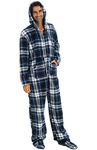 | Del Rossa Men's Fleece Hooded Footed One Piece Onesie Pajamas |