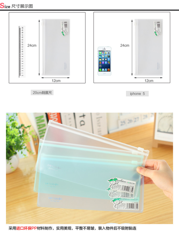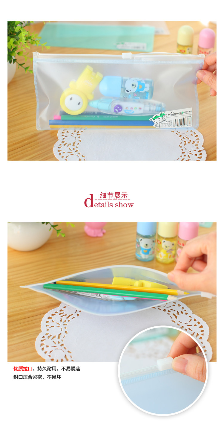 创意文具A5透明小文件袋 环保笔袋 票据袋拉边袋收纳袋
