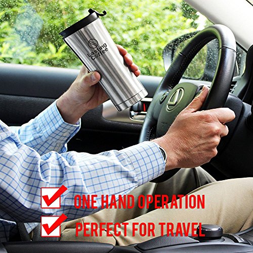 "Best Travel Cup Ever" "GREAT product" "Dishwasher safe!" "Keeps coffee HOT" "Loving it"