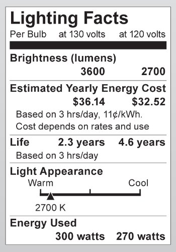 Satco S4961 130V 300 Watt PS35 Mogul Base Light Bulb, Clear