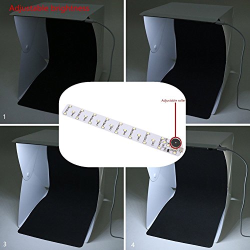 Studio : KALRI Publisher : KALRI Binding : Electronics Product Description Why choose our Portable Photo Studio Light Tent? 1. High Quality Upgade Version → The button design ensure the stability of photography tent. 2. Different from other sellers, it features a brightness adjustment rotary knob to achieve better photography results. 3. Non reflective fabric. with 20 built-in LED lights for the soft and professional multimedia light effect. 4. Portable and foldable design.it can be folded and put into an envelop.