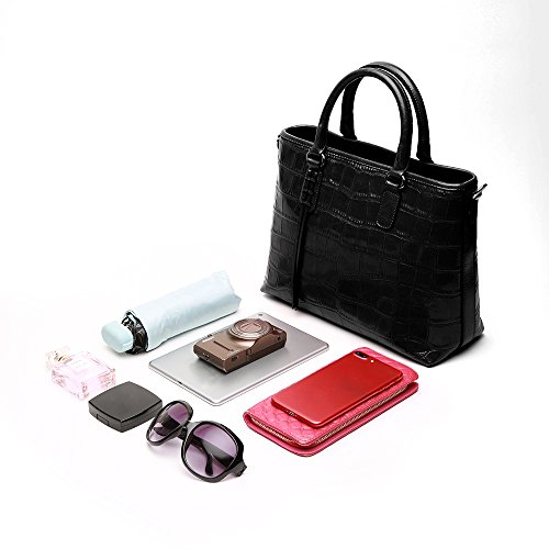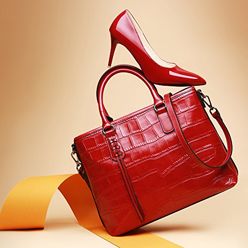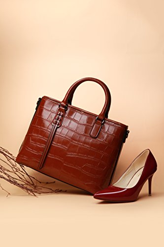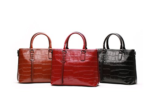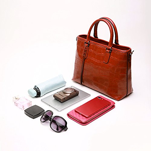 TopWigy Fashion Women's Handbag Genuine Leather Crocodile Pattern Top Handle Bag Purse Tote Satchel Product Details: Item Type: handbag/single shoulder bag/messenger bag Outer Material: High Quality Greased Leather. Inner Material: Polyester Closure: Zipper Color: Black, Brown,Red Occasion: daily use, work, shoping, travel etc Style: Fashion SPECIAL 3-WAY CARRYING: Convertible versatile bag! You can carry it as a handbag/single shoulder bag/messenger bag as there is a long detachable shoulder strap. Key Features: 1, This fashionable ladies bag made by High Quality Greased Leather, with vivid nice leather color. the hand bag has a good inside space, enough for you??to store all the daily essential stuff. the straps are adjustable, to suit for different heights.??there is a zipper on the top to ensure safety. 2, The size is perfect for you for commute or short distance travel. you can put your iPad and small make up bag in. Inside there are additional pockets for cellphone and wallet. The zip pocket in the middle is also handy. Color is also very nice. Very suitable for daily life practical. 3,It has a pocket from back outsides and many inside pockets. A lot of places you could put your things .Some times you can use it as a fashion diapper bag. 4,The big purse/tote is perfect size for everyday use, and for travel it will be excellent also! Not only will everything be secure The easy access to glasses, phone, A pen and necessities, the side zipper pockets are easy accessible. Over the shoulder its soft and secure. and holds everything! The handle handbag is perfect for dinner or party. Kind Note: After you open the package please put the bag somewhere to air out for a few days because there is a little unpleasant odor. The odor will completely fail.