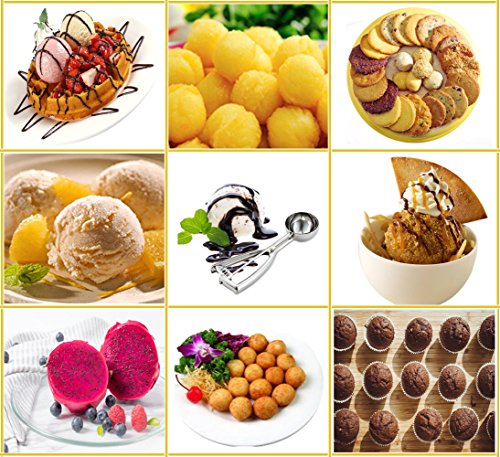 ● MULTIPLE USES, IDEAL KITCHEN TOOL - With H-Min metal ice cream scoop, we would use it to make beautifully rounded balls of ice cream, fruit, sorbet, melon ball, and meatballs, and delicious cookies, muffins, cupcakes, and more. They are ice cream scoop trigger, cookie scoop, melon baller scoop, sorbet scoop and cupcake scoop also. In short, it is a great versatile kitchen tool