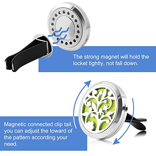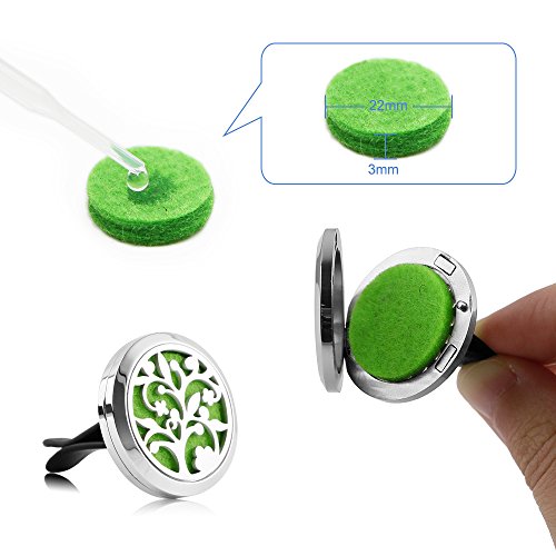 - Usage: Apply a few drops of your essential oil to one felt pad, put it inside the 30mm car locket. Easily to clip on car air-conditioning vent, place it on office desk, use it at home or any other proper places that you prefer.