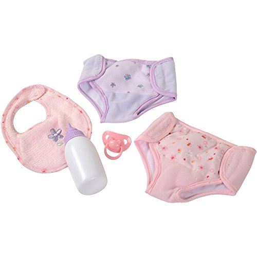 COMPLETE COLLECTION: CP Toys Baby Doll Dress and Play Collection features everything your child will need for hours of nurturing pretend play! This 16" baby doll features multiple outfits, hats, a bottle, a pacifier, and even a pretty pink floral diaper bag to carry it all in!