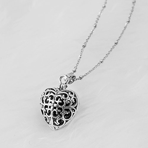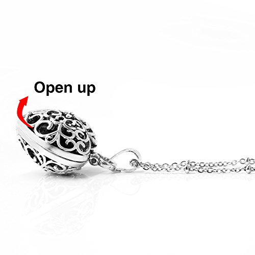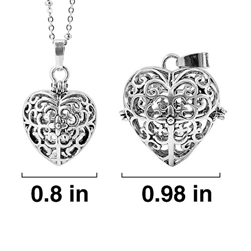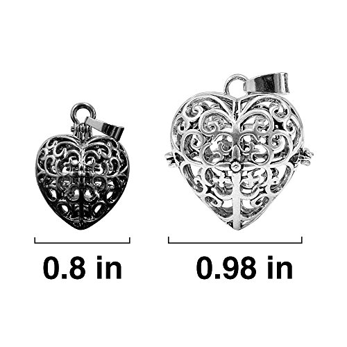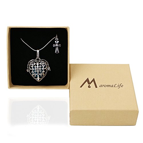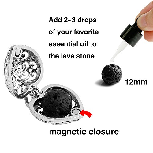 Maromalife Heart Aromatherapy Essential Oil Diffuser Necklace Locket Pendant Magnetic Closure, 6 Black True Lava Stone with 25.5" Adjustable Chain Perfect Gift Set-Silver