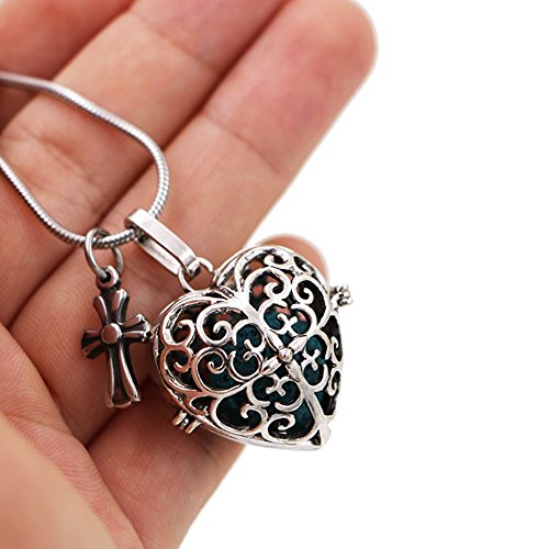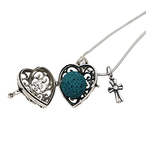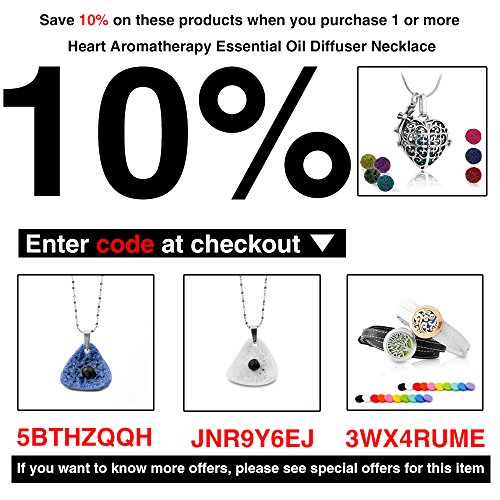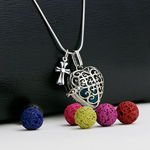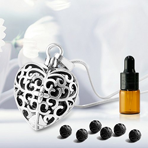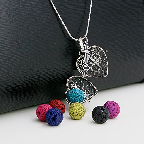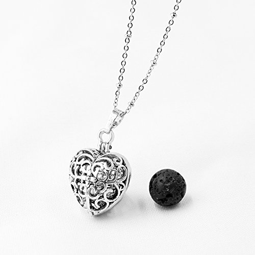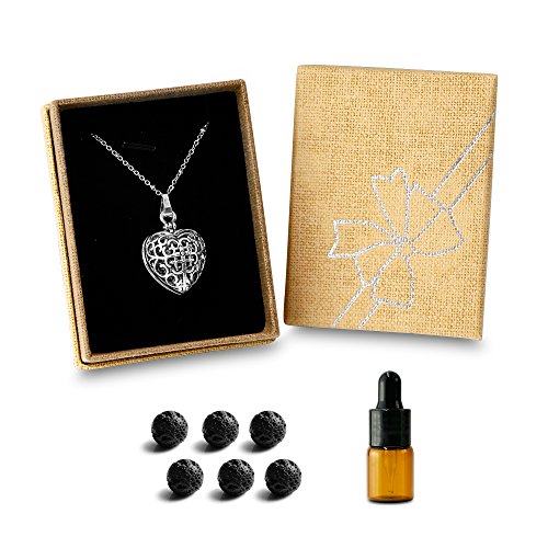 Premium Heart Aromatherapy Essential Oil Diffuser Necklace Locket Pendant and 7 Colours Lava Stone Beads with Adjustable 24" Chain Perfect Gift Set