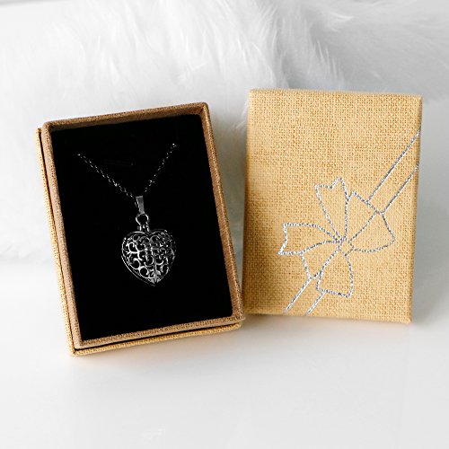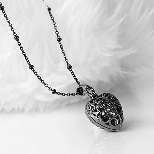 Maromalife Heart Aromatherapy Essential Oil Diffuser Necklace Locket Pendant Magnetic Closure, 6 Black True Lava Stone with 25.5" Adjustable Chain Perfect Gift Set-Black