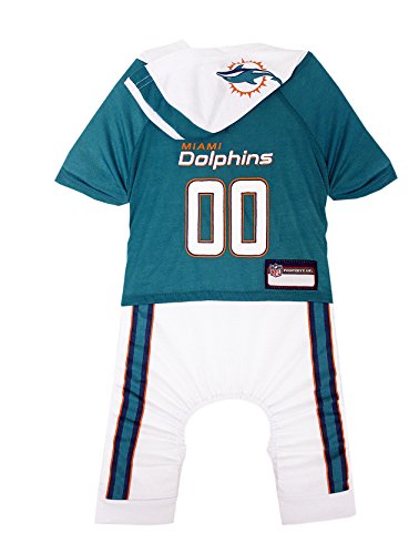 -. Binding : Misc. -. Brand : Pets First -. Color : Blue -. EAN : 0849790054233 -. Feature : Officially NFL Licensed! / NFL woven jock tag for personalization. - Team name and logos are printed to make this an outstanding pet outfit / Made with cotton poly for maximum comfort with a Velcro closure for easy fit / Machine wash cold. Do not bleach. Line dry. Do not iron print / For sizing specifications, please refer to the Size Chart below the item's picture, by measuring your pet from the nape of the neck to the base of the tail -. Label : Pets First -. Manufacturer : Pets First -. Model : DOL-4050-SM -. MPN : DOL-4050-SM -. PackageQuantity : 1 -. PartNumber : DOL-4050-SM -. ProductGroup : Pet Products -. ProductTypeName : PET_SUPPLIES -. Publisher : Pets First -. Size : Small -. Studio : Pets First -. Title : NFL Miami Dolphins Pet Onesie, Small -. UPC : 849790054233