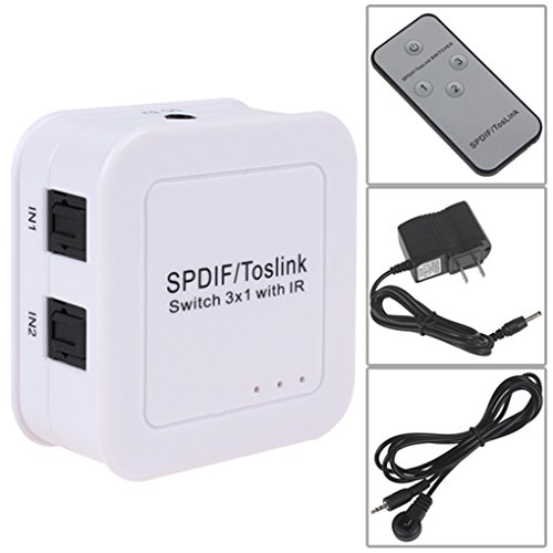 Luzan 3 Ways Digital Optical Audio Converter Switcher SPDIF/ TOSLINK Audio 3x1 Switcher with IR Remote Control Three Inputs to One Output