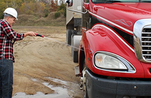-. Feature : Die-cast, zinc construction with brass spray tip for ultimate durability / 200 PSI to weather high water pressure / Adjustable front tip alters spray from powerful jet to light rinse / Grip Guard insulation for comfort during extended use