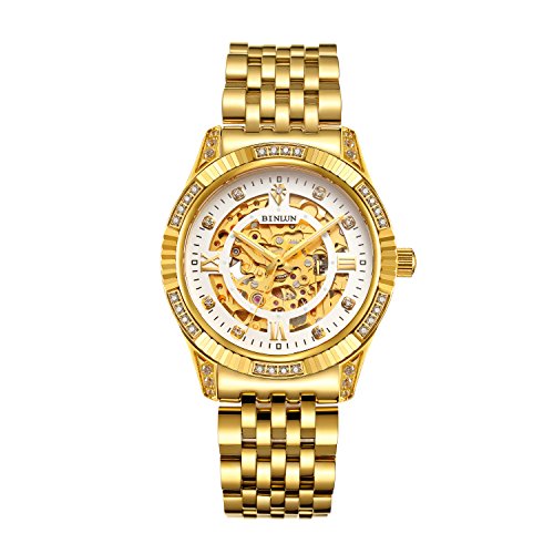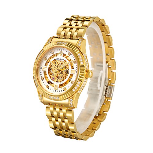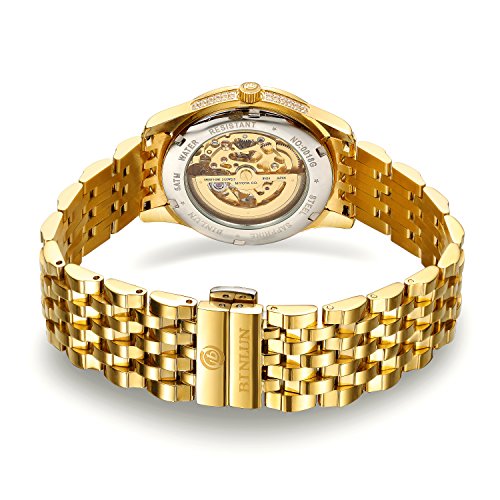 -. Title : Binlun Men's Luxury 18K Gold Tone Stainless Steel Skeleton Automatic Turbillon Watch with Luminous Hands
