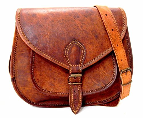 Shakun Leather Womens Vintage Genuine Brown Cross Body Bag, NEW