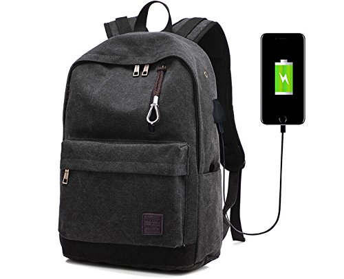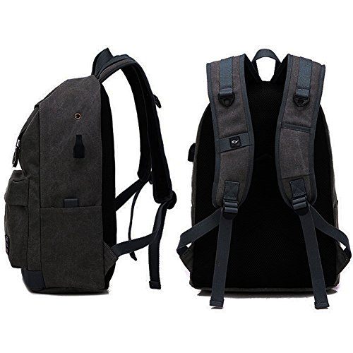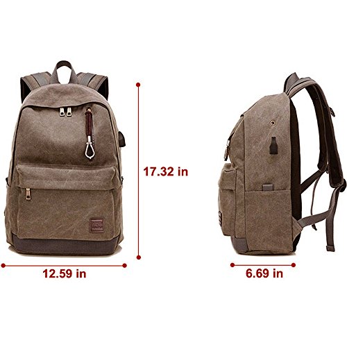 -. Feature : Dimensions: High quality waterproof canvas, backpack, lined with polyester,Keep a good status long time usage. / Size: 17.32*12.59 *6.69in(H*L*W),12-15.6inch's laptop can be put in backpack,Capacity 20-35L. / Structure: There are two outer pockets, the inside is a main compartment, separated in the middle, there are two zipper dark, backpack side of a headphone hole, an external USB charging function interface,has a padded back and shoulder straps,adjustable padded Reinforced Strap,Unique design straps ease the pressure on the shoulder, breathability and maximum back support while traveling. / Purpose: Multi-functional travel duffel bag,short journey bag, weekend travel bag, sports duffel bags.Holiday and vacations travel bag works well with a variety of different outfits and casual styles. A great gift choice,Great for hiking,School,travel,camping & as carry on lage,for both men & women. / Service: 100% no reason return and full refund at your any request,just for the best customer buying experience,Can buy at ease.