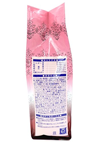 素材構成:たんぱく質:32.00%以上、脂質:15.50%以上、粗繊維:5.00%以下、粗灰分:9.00%以下、水分:10.00%以下、代謝エネルギー: 360kcal/100g