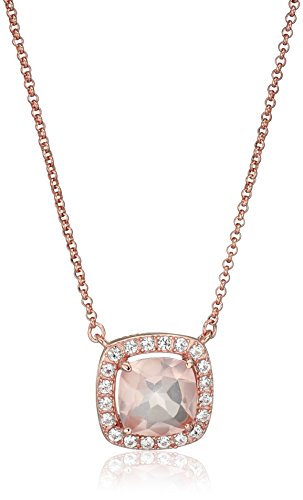 -. Title : Rose Gold Plated Sterling Silver Cushion Rose Quartz 10mm and Created White Sapphire Halo Pendant Necklace, 18"