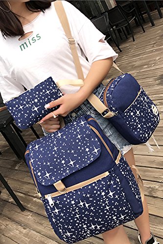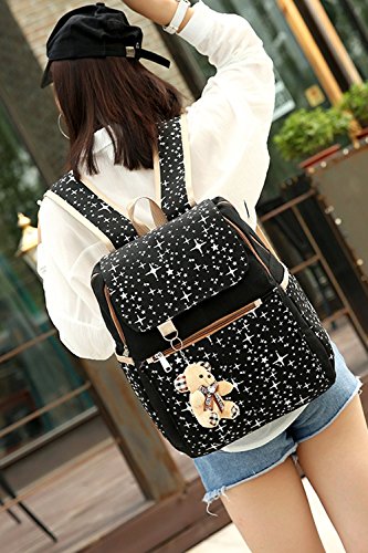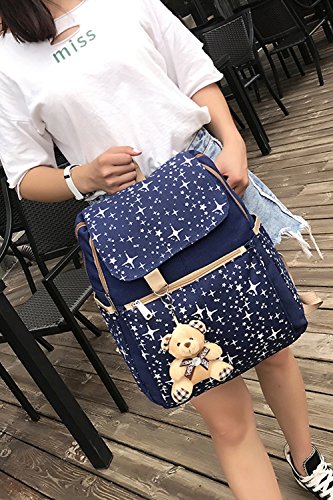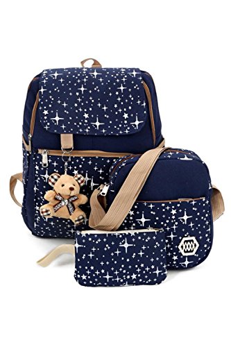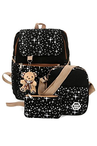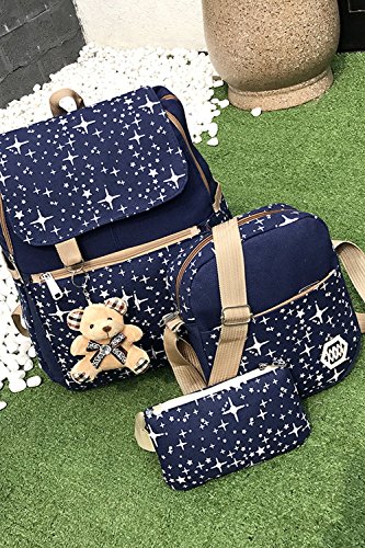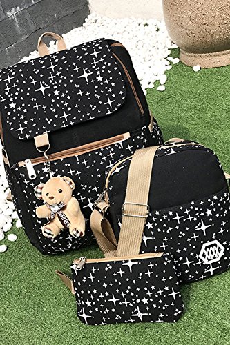 Product Description Description: 3 piece set: backpack 1 shoulder bag 1 pouch case 1. Backpack with 5 compartments, 1 front zip pocket, 2 side pockets, 2 zippered main compartments. 2.1 Fastener One of the main compartments (there are two pockets for inner slip), one of the front zipper has a pocket shoulder bag. 3. The coin case matches your iPhone, makeup, change, or key. 4. Cartoon Bear Keychain Decoration Backpack size: Height 15.7 "(40 cm) x Width 12.6" (32 cm) x Length 4.7 "(12 cm) Weight: 14.8 oz (0.42 kg) Material: Canvas Package Included: 1 backpack 1 Shoulder bag 1 pouch case