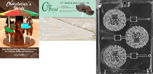 Cybrtrayd '50th Lolly' Letters and Numbers Chocolate Candy Mold with 25 4.5-Inch Lollipop Sticks and Chocolatier's Guide
